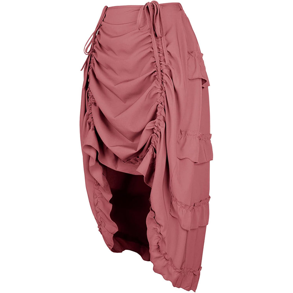 Women's Steampunk Skirt Ruffle High Low Outfits Gothic Plus Size Pirate Dress