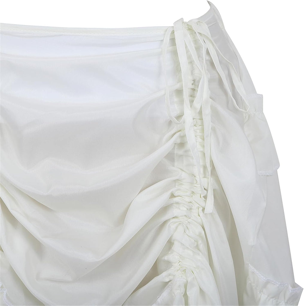 - Styles:Single skater skirt Short front and rear Long, your legs look taller and thinner,Steampunk high low skirt, ruffles, ankle length, adjustable string at front,Asymmetrical high low length,Fashion steampunk style skirt, made by satin fabric, with wide elastic waistband, which can fit different type body, The design of the fold, personality is not messy
