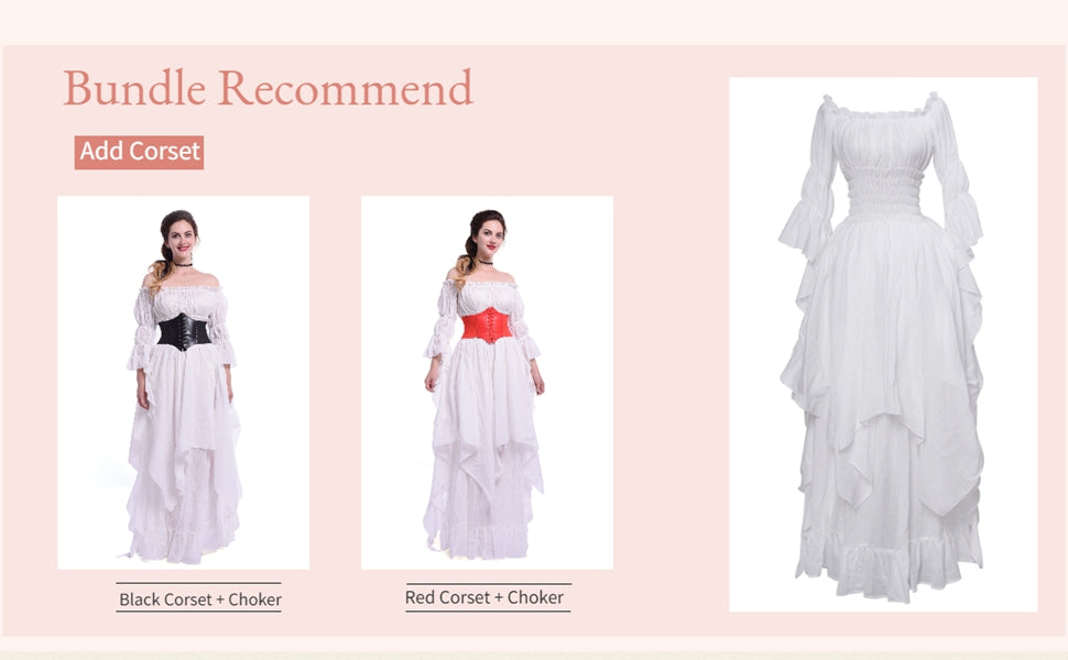 - Renaissance Costume Features: Medieval dress has elastic neckline, worn off the shoulder to show more beautiful neck, it won't be fall down. Stretch around the chest and waist, also availbale for plus size ladies