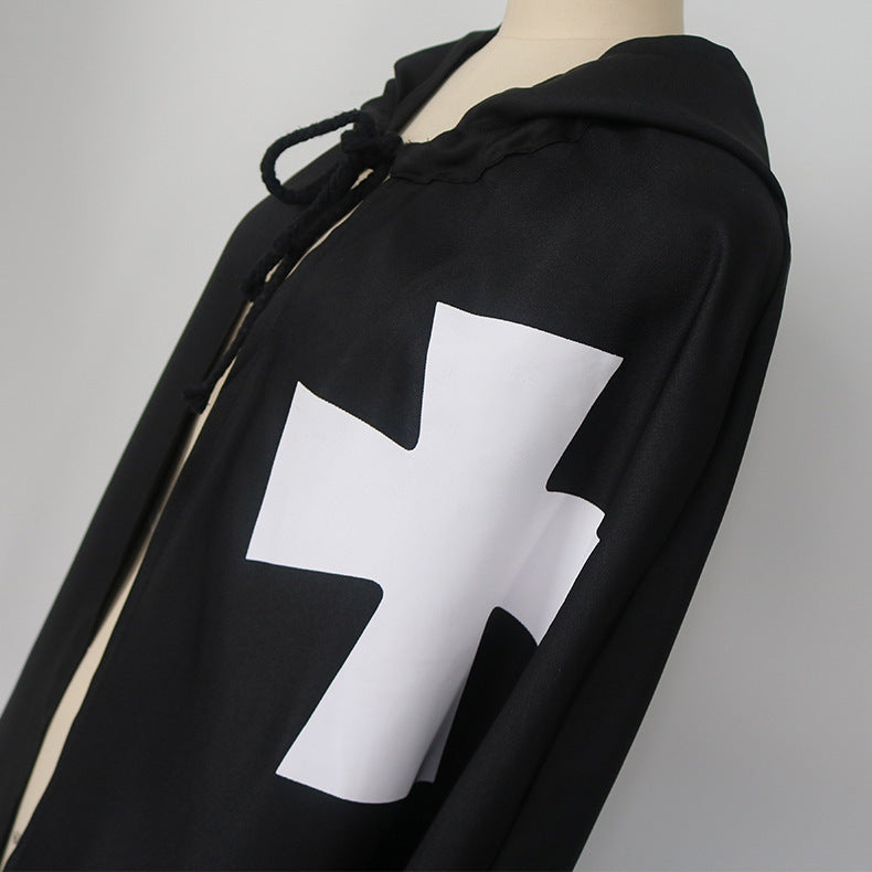 Halloween Cloak Medieval Templar Knight Cape Black or White Hoodie Cosplay Costume