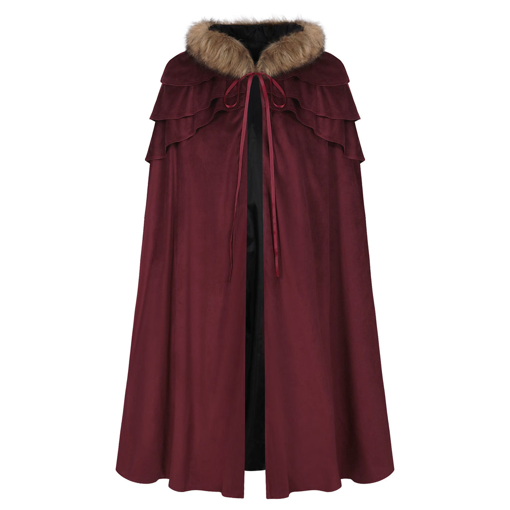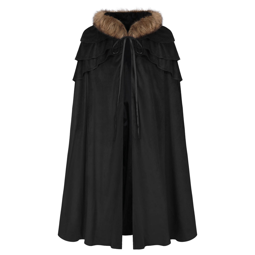 - Long Viking Faux Fur Cloak: Long Medieval Cape,A must-have accessory for history lovers, fantasy enthusiasts, and fashion rebels alike. This floor-length cloak serves as the perfect finishing touch for your Halloween costume or a stylish outerwear piece to shield you from chilly winds during daily adventures.