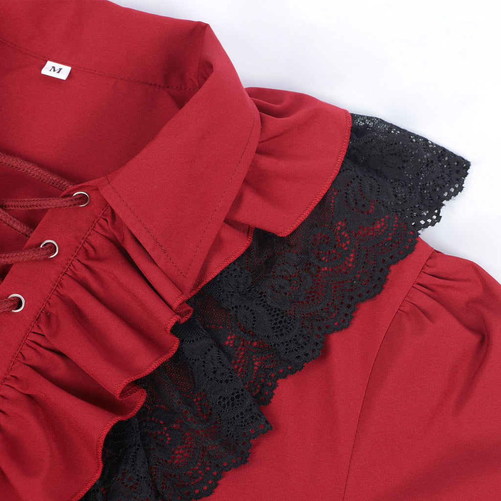 - Features: Renaissance vampire costume tops with long sleeve, lace up, ruffled front, lace flared cuffs and lace placket, steampunk gothic style, cosplay costume shits for men and women.
