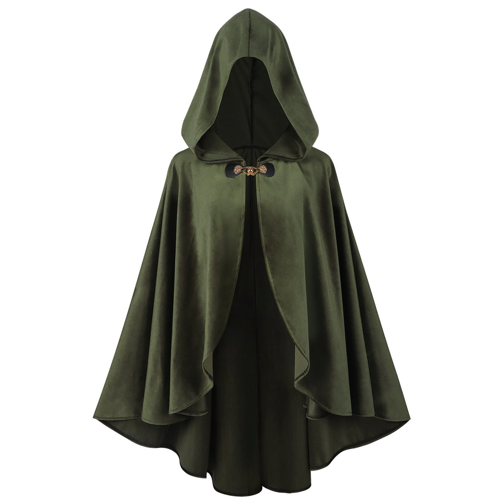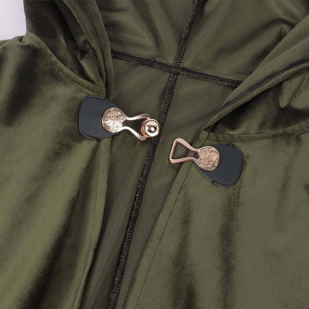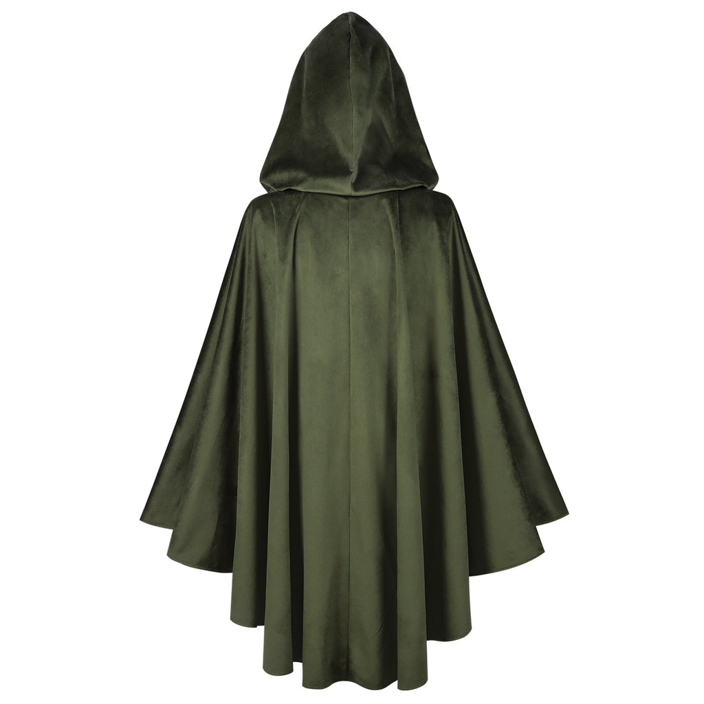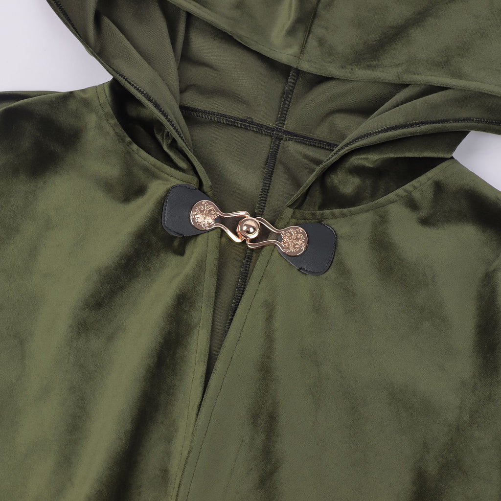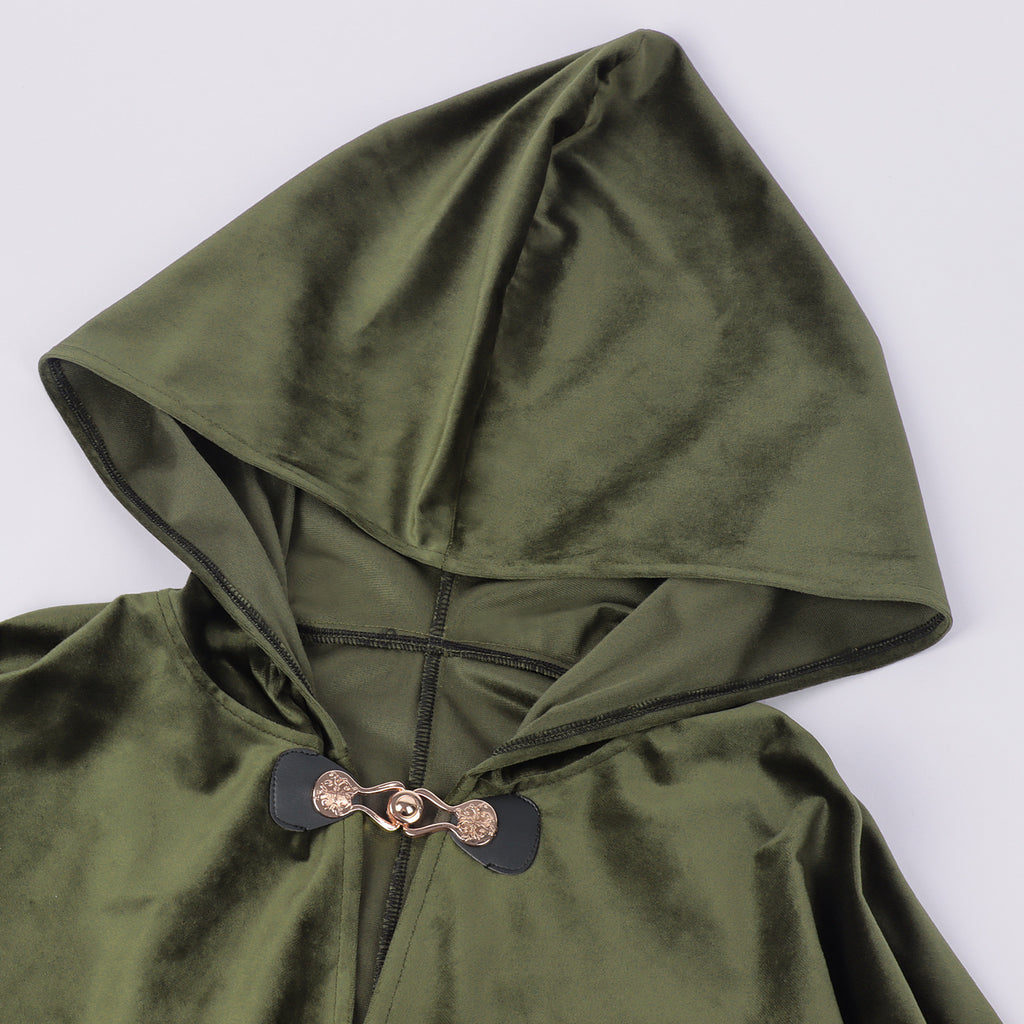 Renaissance Hooded Green Cloak Medieval Velvet Cape with Hood Men Women Capelet for Hobbit Halloween Costume