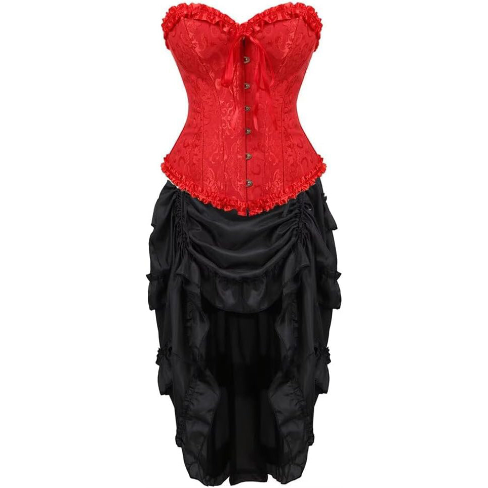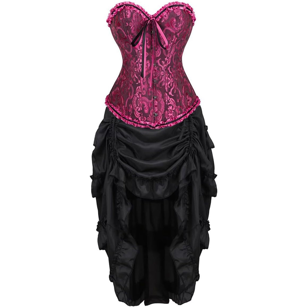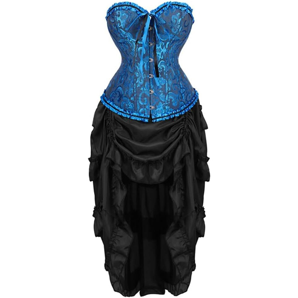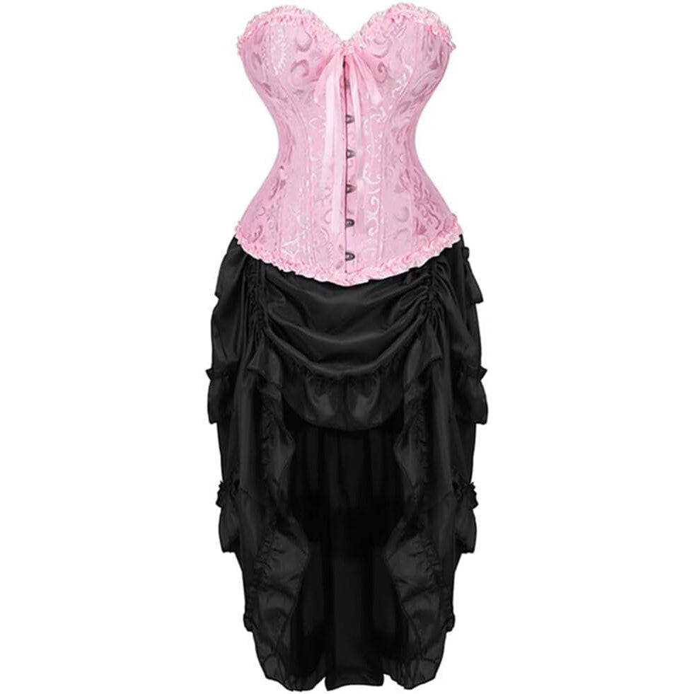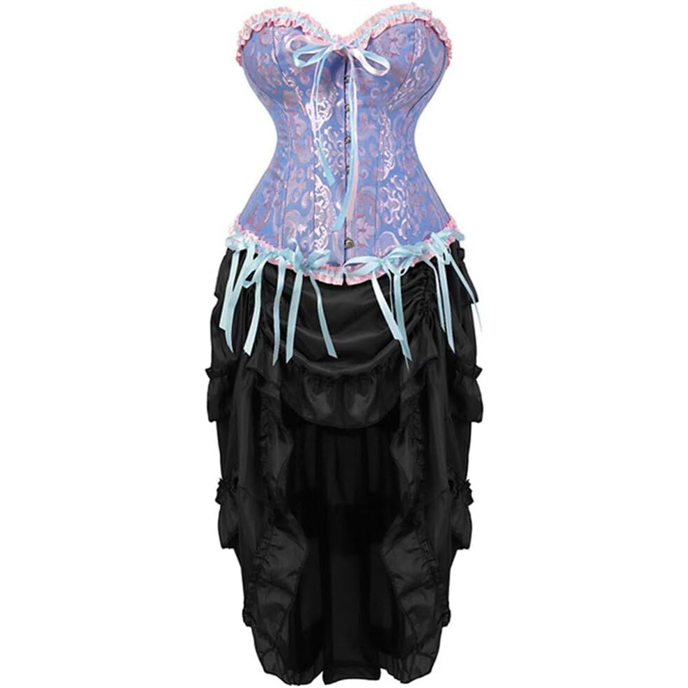 Women Corsets Top Skirt Set Dress Bustier Floral Plus Size Princess Costume