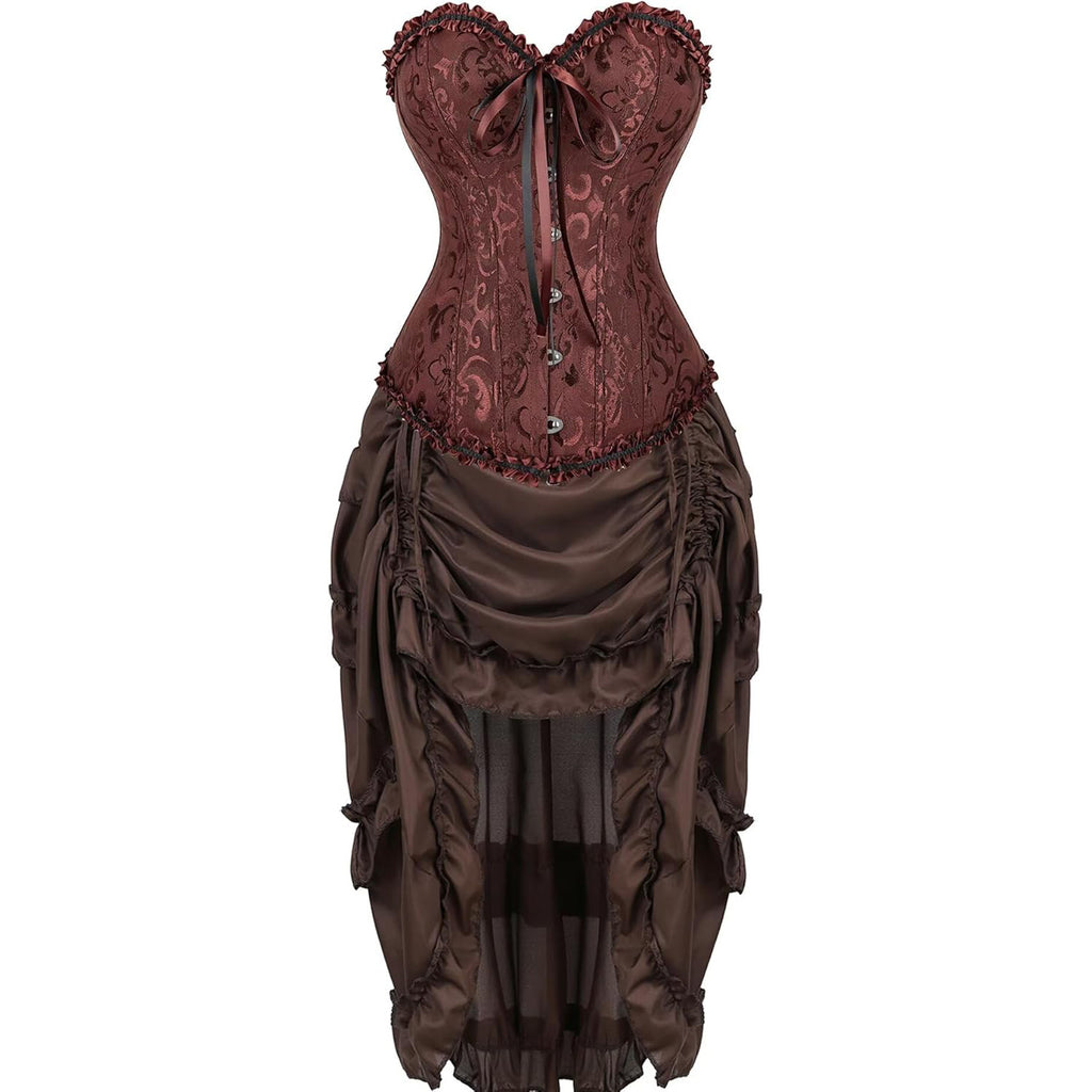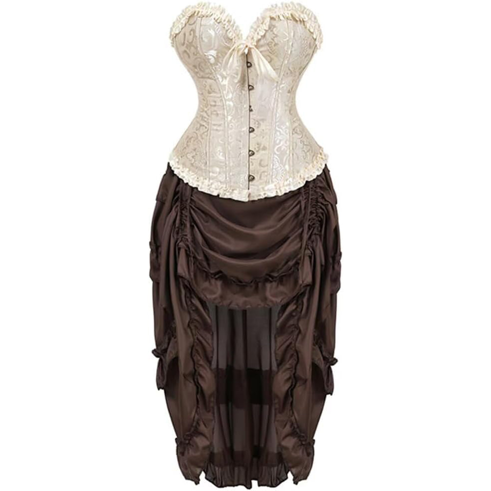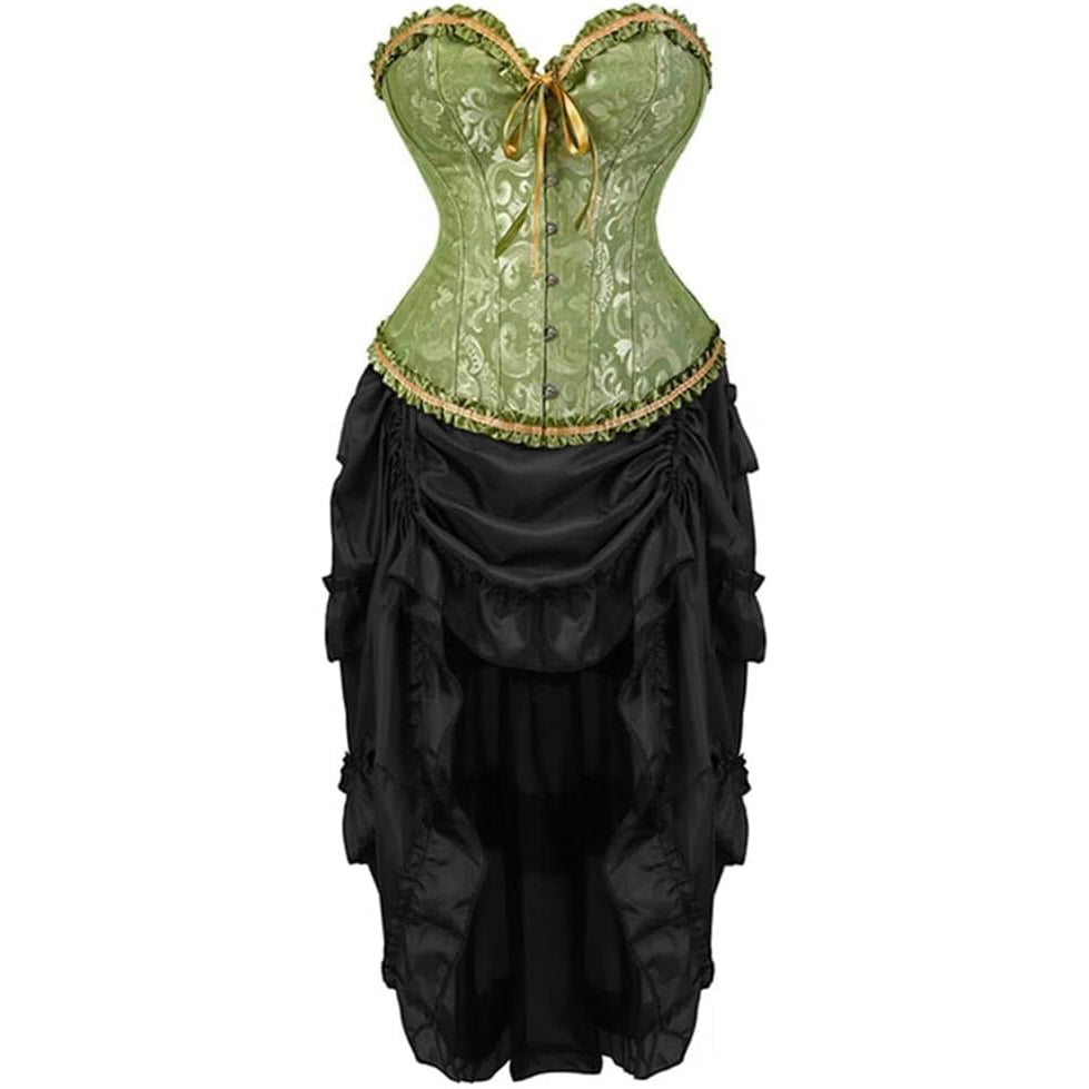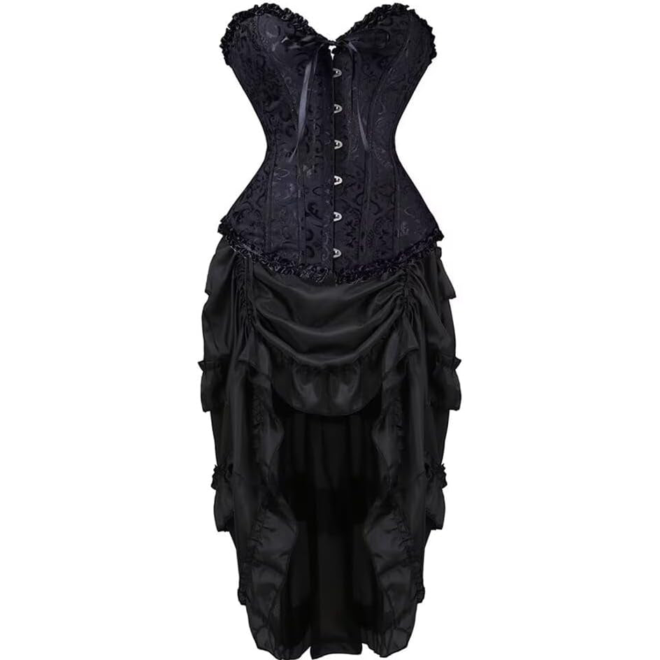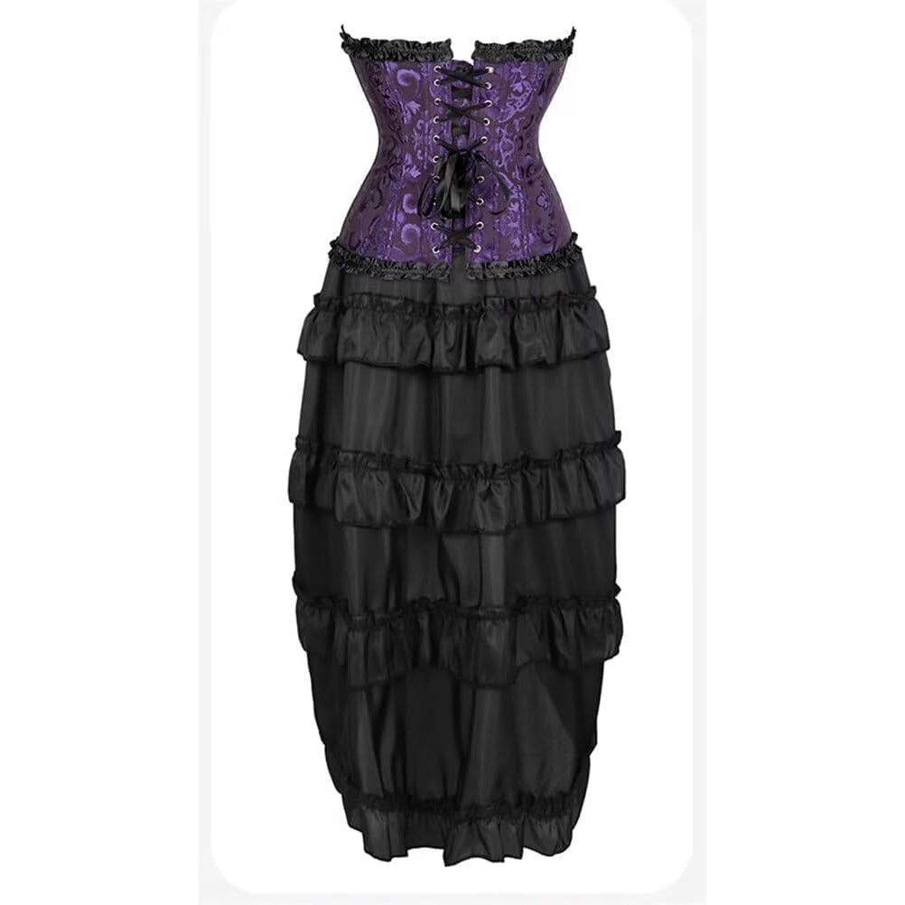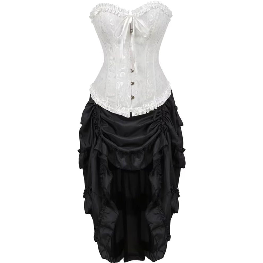 Women Corsets Top Skirt Set Dress Bustier Floral Plus Size Princess Costume